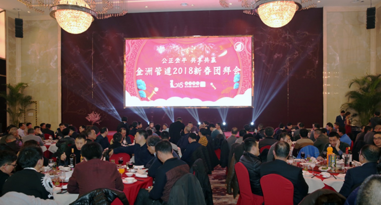 2月9日,麻豆视频入口在线观看管道2018年新春团拜会在湖州东吴开元酒店湖州厅举行,公司中高层管理人员、先进个人、先进集体代表、班组长及部门助理共280多人齐聚一堂,共叙友谊、共庆佳节。